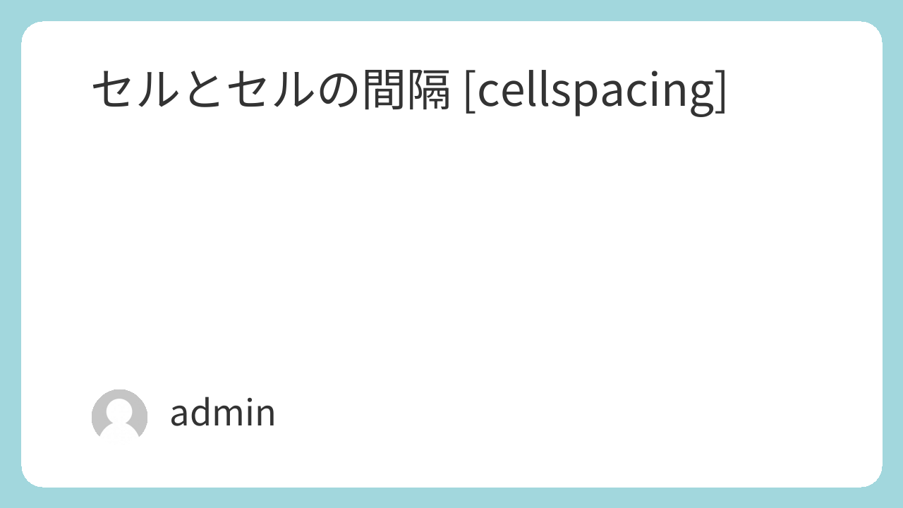 2013.10.24 / 更新日:2013.10.24 HTML セルとセルの間隔 [cellspacing] Twitter Facebook はてブ Pocket LINE セル間隔「0」の場合 見出し1 見出し2 見出し3 データ1 データ2 データ3 セル間隔「8」の場合 見出し1 見出し2 見出し3 データ1 データ2 データ3 Twitter Facebook はてブ Pocket LINE HTML HTML表